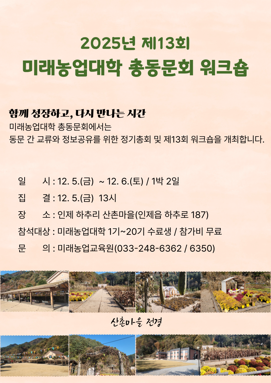 2025년 제13회 미래농업대학 총동문회 워크숍 안내