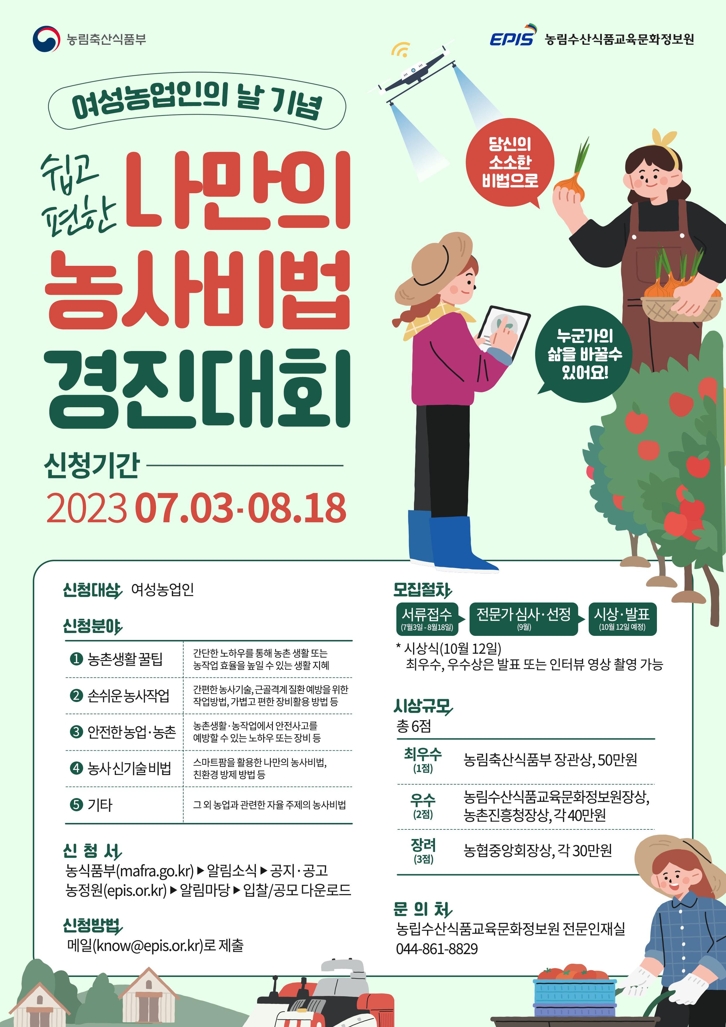 | 43 | 여성농업인의 날 기념 2023년 농사비법 경진대회 안내 | 관리자 | 2023-07-10 | 537 | |