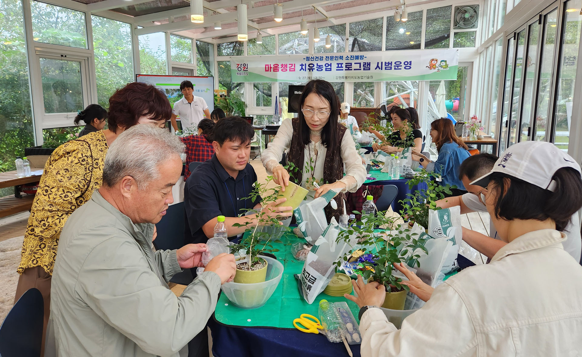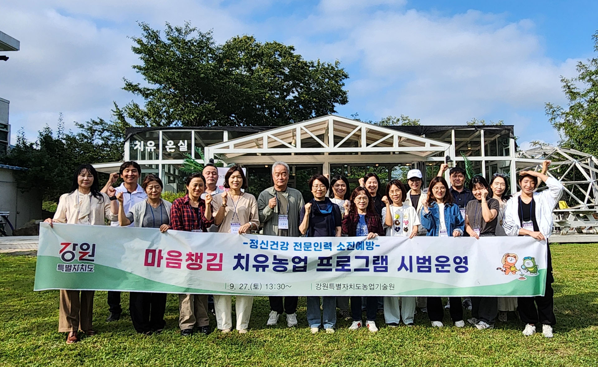 강원특별자치도 농업기술원(원장 김동훈)은 9월 27일(토), 강릉 해품달 치유농장에서 정신건강 전문인력 16명을 대상으로「마음챙김 치유농업 프로그램」을 시범 운영했다. 이번 프로그램은 농촌진흥청과 강원특별자치도농업기술원, 강원특별자치도정신건강사회복지사협회가 협력해 마련한 것으로, 정신건강 분야 종사자의 치유농업 참여 기회를 확대하기 위해 추진됐다.