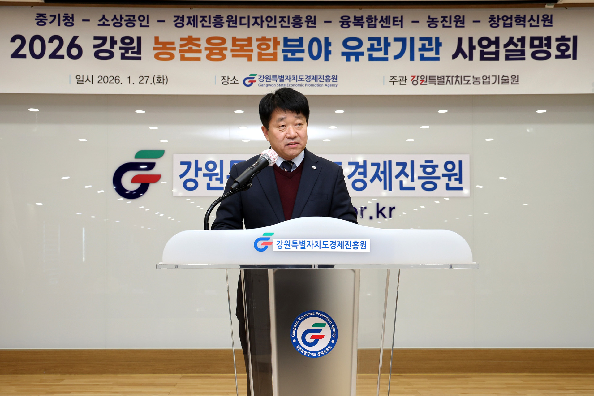 강원특별자치도 농업기술원(원장 김동훈)은 1월 27일(화), 강원특별자치도경제진흥원 대강의실에서 2026년「강원 농촌융복합분야 유관기관 합동 사업설명회」를 개최했다.