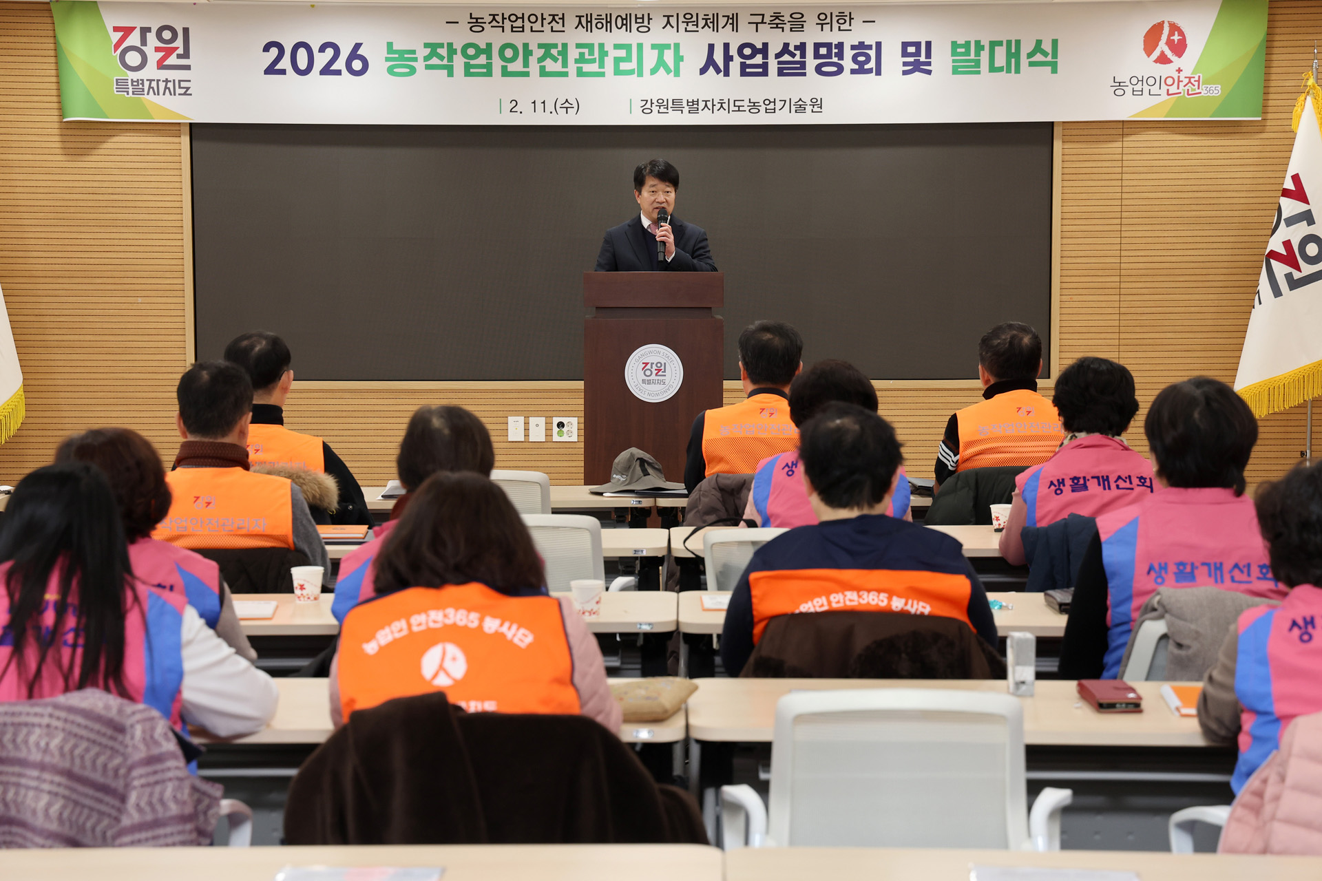 강원특별자치도 농업기술원(원장 김동훈)은 2월 11일(수), 본원에서 농업현장의 안전문화 확산과 농업인 재해예방을 위해 농작업안전관리자 대상 사업설명회 및 발대식을 개최하였다.