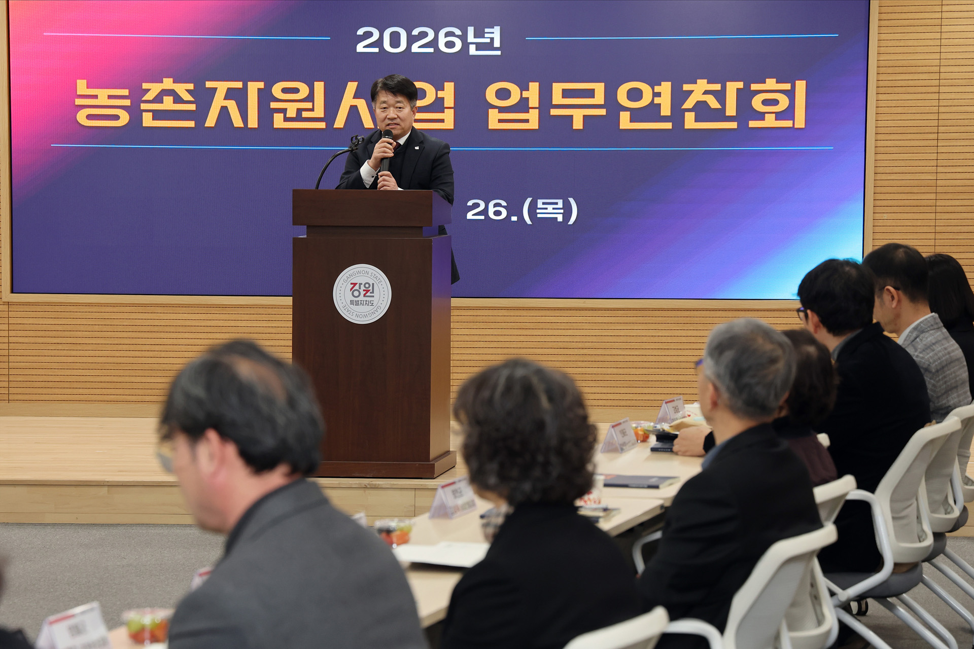 강원특별자치도 농업기술원(원장 김동훈)은 2월 26일(목) 본원에서 도내 시군 농촌자원사업 담당 과장을 대상으로 ‘2026년 농촌자원사업 업무연찬회’를 개최했다.